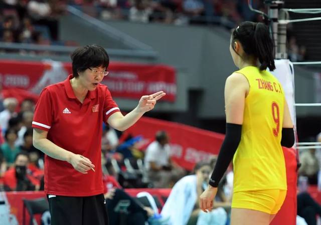 9月28日,中國隊主教練郎平(左)在比賽間隙指導張常寧。新華社記者 賀燦鈴 攝