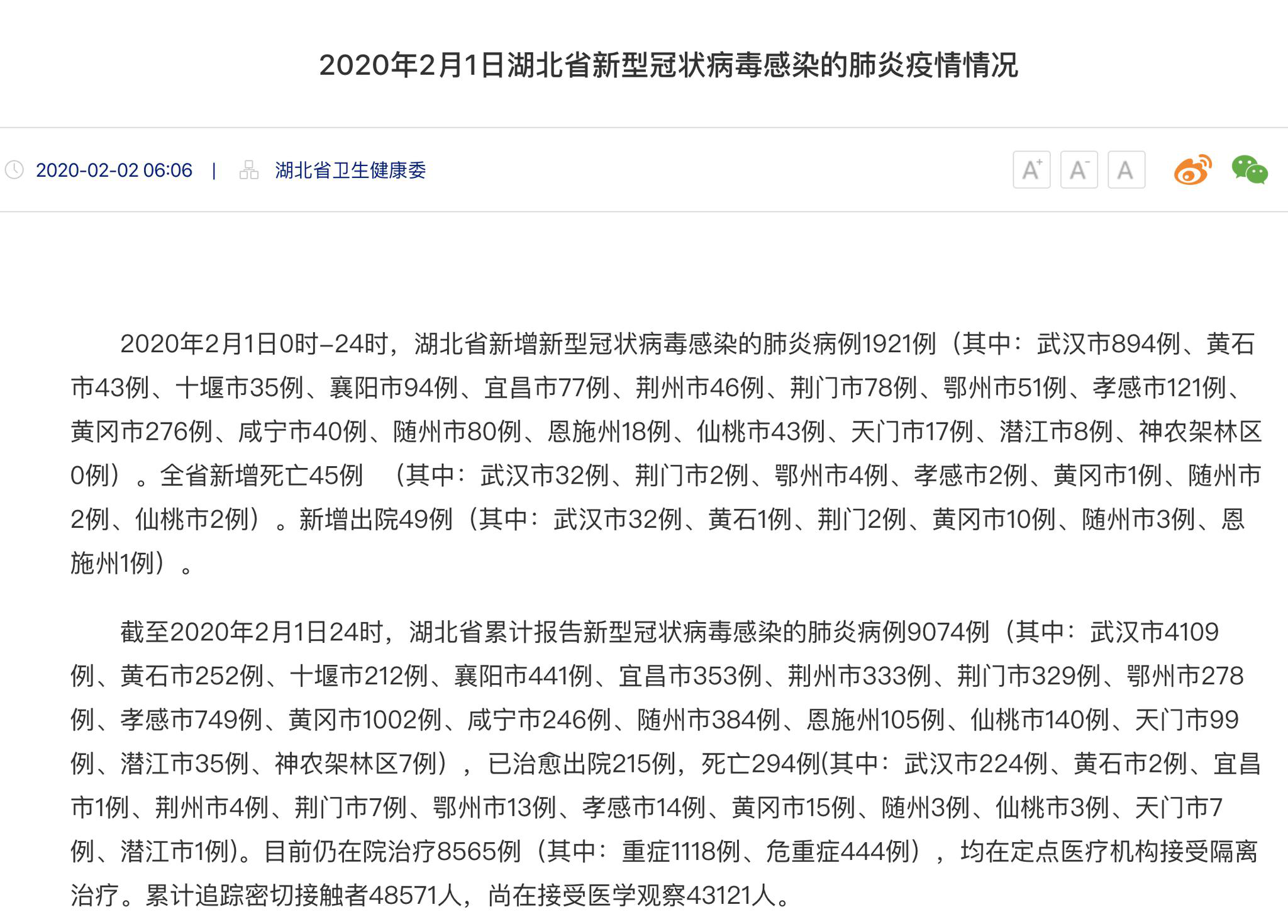 據湖北省衛生健康委員會通報,2020年2月1日0時-24時,黃岡市新增新型冠狀病毒感染的肺炎病例276例,累計報告新型冠狀病毒感染的肺炎病例1002例,成為武漢之外全國第二個破千城市。